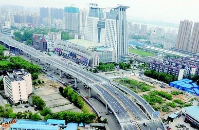 记者开车从二环线珞狮路街道口,上高架右拐,通过尤李立交匝道驶上雄楚大街高架,一条宽阔的双向六车道沥青路面出现在面前。车辆直行一路畅通,抵达鹦鹉洲长江大桥,再往前,到达墨水湖北路高架,抵达王家湾立交桥只需15分钟,再向前3分钟,即通过郭茨口立交及知音桥,到了汉口。