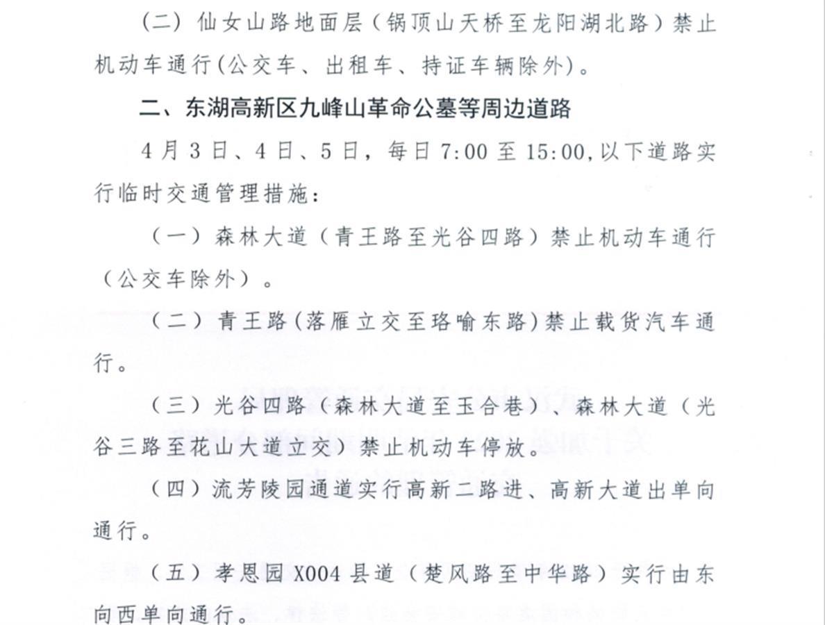 (三)九龙宫陵园,金发大道(平江大道至余泊大道)禁止大中型货车通行。