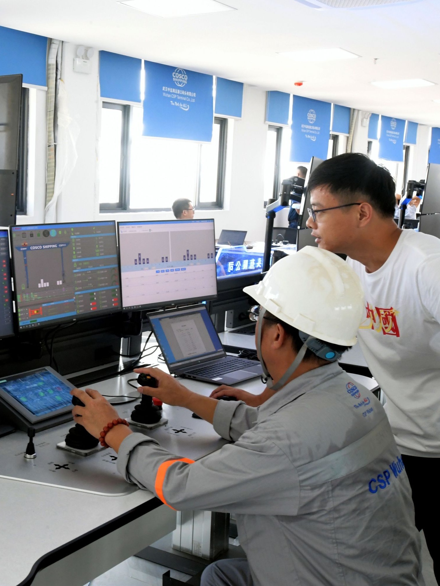阳逻国际港集装箱水铁联运项目总控室。