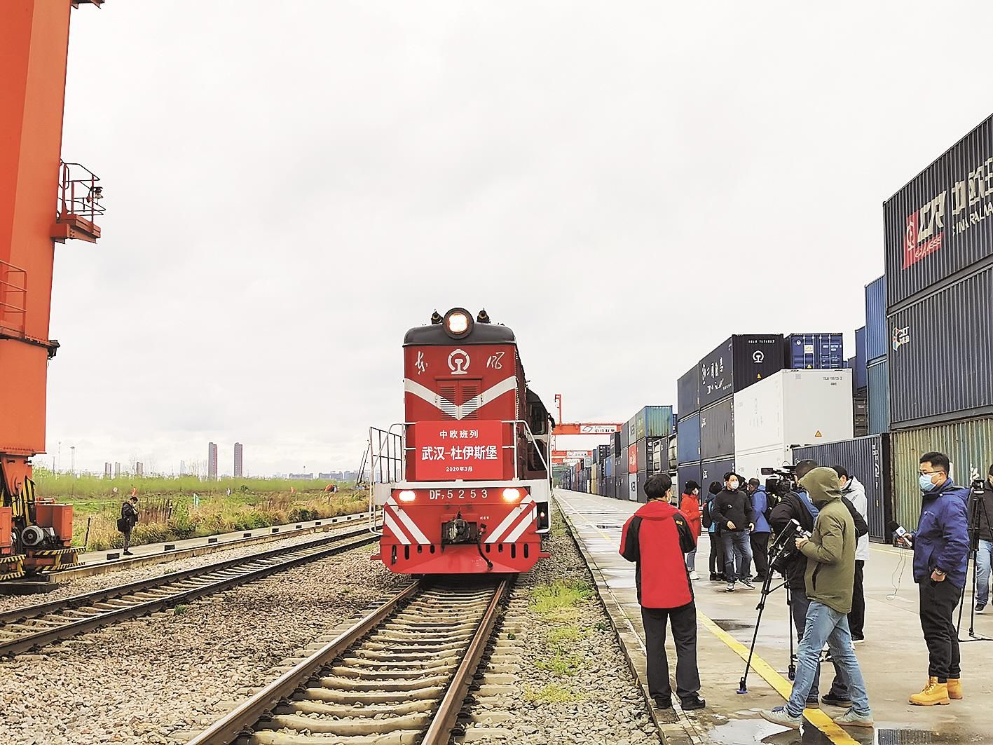 2020年3月28日,一列从武汉开往德国杜伊斯堡的班列发出。中欧班列(武汉)已成为湖北货物进出口的重要通道。