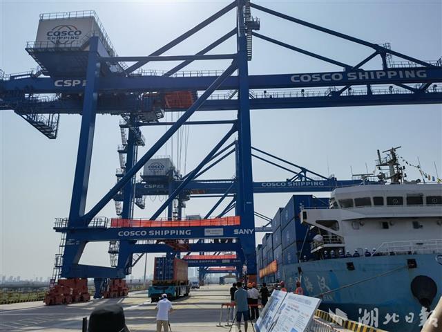 湖北日报讯(记者戴辉、通讯员黄树、刘峥辉)8月1日9时30分,万吨货轮汉海2号停在阳逻港,当中欧班列缓缓驶入阳逻国际港水铁联运码头,无人驾驶运输车将10多米长的集装箱,由铁路区运往港口码头进行装卸,标志着由中交二航局参建的武汉中远海运阳逻国际港水铁联运港口顺利开港运营,真正打通了武汉阳逻国际港水铁联运的“最后一公里”。