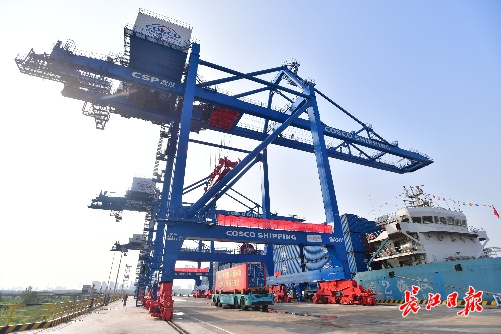 该项目由武汉中远海运港口码头有限公司建设运营,2020年8月1日开工,一年时间建成开港通车。
