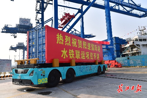 长江日报8月1日讯 8月1日上午,阳逻国际港集装箱水铁联运项目开港通车。