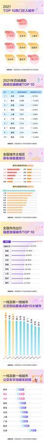 《报告》显示,2021年全国主要城市的交通拥堵状况整体改善,百城中近七成城市通勤高峰拥堵指数同比下降。疫情防控常态背景下,公众市内出行热度全面回升。其中,江浙地带居民市内出行热度最高,武汉居民出行热度涨幅最高。公共交通方面,新一线城市交通基础设施继续完善,成渝地区公交通勤幸福感较高。