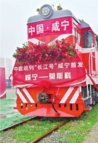 3月25日,满载生活日用品和机械零部件等货物的中欧班列“长江号”在咸宁首发。