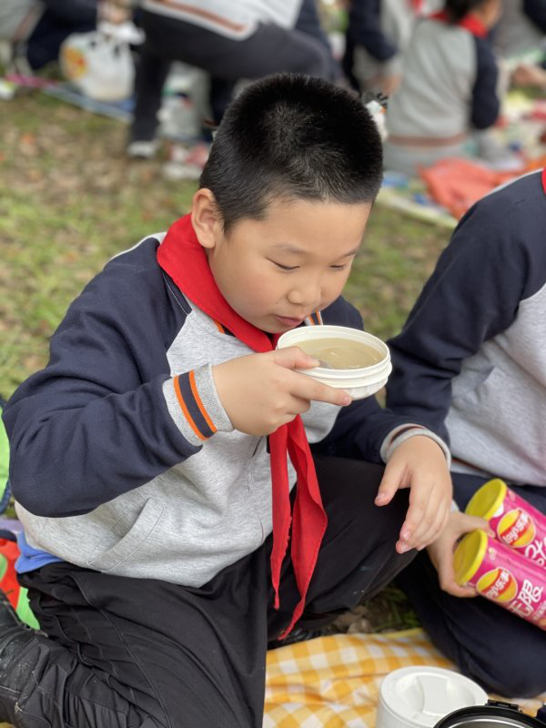 尽情赏景,快乐欢笑,孩子们的肚子开始咕咕叫。赶紧的,大家打开地垫,小组开展野餐活动。餐垫上,摆放着爸妈牌爱心美食,细细品尝之余,想起春天里的野菜,一股春天的味道扑面而来。这次研学活动不仅丰富了同学们的课外生活,也激发了他们对大自然的热爱之情。