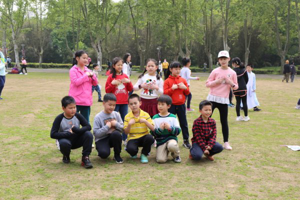 磨山风景区传来了阵阵悦耳的歌声,娓娓动听,余音袅袅,那是三年级的飞禽小队拉歌赛,曲目有孩子们喜欢的《满天星》、《汉阳门的花园》、《亲爱的旅人》等等。他们在前期进行了充分的准备,和着歌曲的旋律配上优美的舞蹈动作,小组分工,团结协作,在今天的舞台上大放异彩,引得路人驻足欣赏。