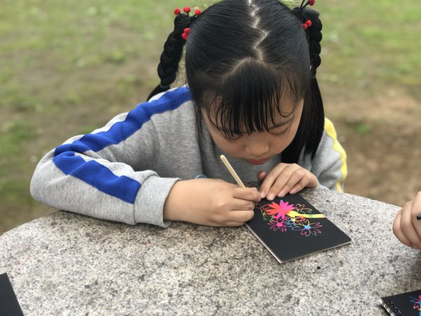 除此之外,三年级的同学们还精心设计了“春的刮画”的活动,孩子们眼里看着春天,手里画着春天,纷纷陶醉在春的怀抱中,温暖又美好。