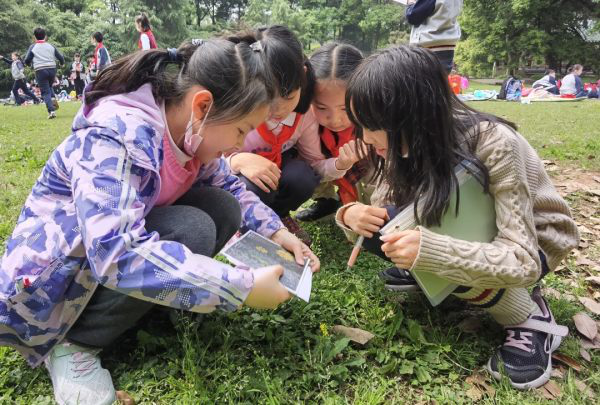 附地菜,车前草,繁缕,救荒野豌豆……各种各样的野菜成了四年级同学手中的宝贝。他们在子豪哥哥的讲解下,探索大自然的奥秘,认识春天的野菜,摸一摸,闻一闻,比一比,了解野菜的“前世今生”,玩得不亦乐乎。