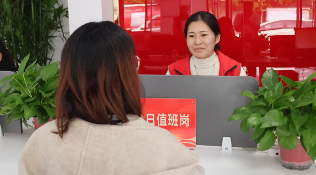 不一会儿,就有居民来到便民服务大厅咨询居民养老政策。社区工作人员及时做好解释工作:“现在居民养老的政策,是有6个档位,从400元到9000元不等。”
