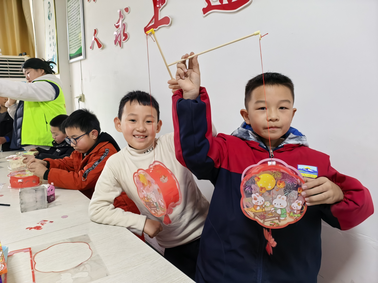 制灯笼,话团圆,悟节日内涵。双沟镇文化站“爱心托管班”的孩子们在大学生志愿者的悉心指导下,认真裁剪、细致拼接,聚精会神地制作手工灯笼。随着一盏盏精巧的灯笼逐渐成形,传统节日的文化韵味与志愿者们的暖心陪伴在托管班中相互交融,交织成寒假里最温馨的时光。