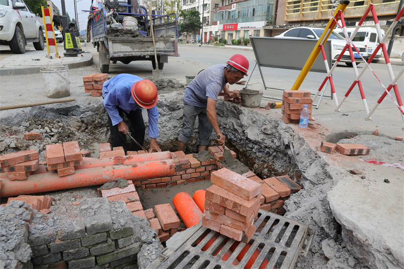 6月1日,经过5天连续紧张施工,汉江路东段32个低压入户检查井全部建成。