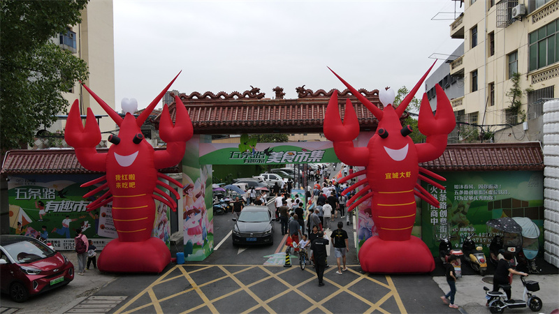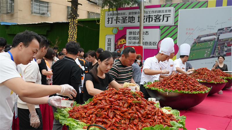 宜城的美食集市当然离不开宜城大虾,现场特意准备了千人品虾活动,让市民游客免费品尝到了地道的宜城大虾味道,赢得连连称赞。