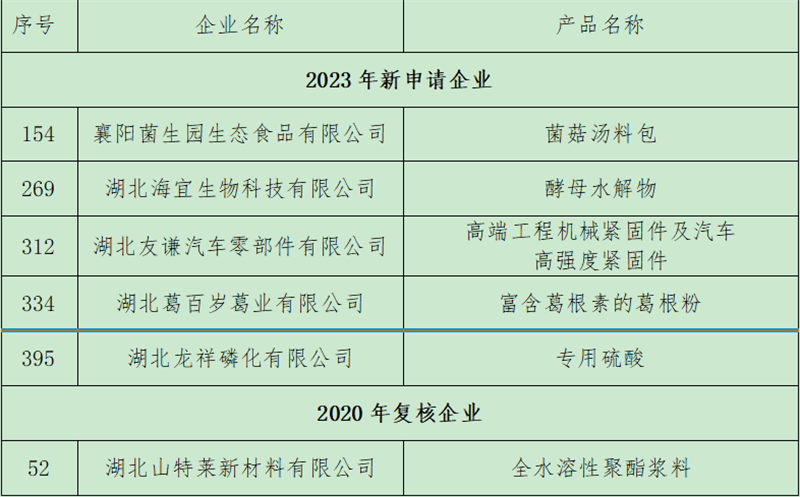 近日,省经信厅公示了2023年度湖北省制造业单项冠军企业名单,宜城6家企业榜上有名,其中1家复审企业,5家新申报企业。至此,全市省级制造业单项冠军企业(产品)总数增至12家,涵盖装备制造、农产品、纺织服装、精细化工、新能源新材料等多个行业。