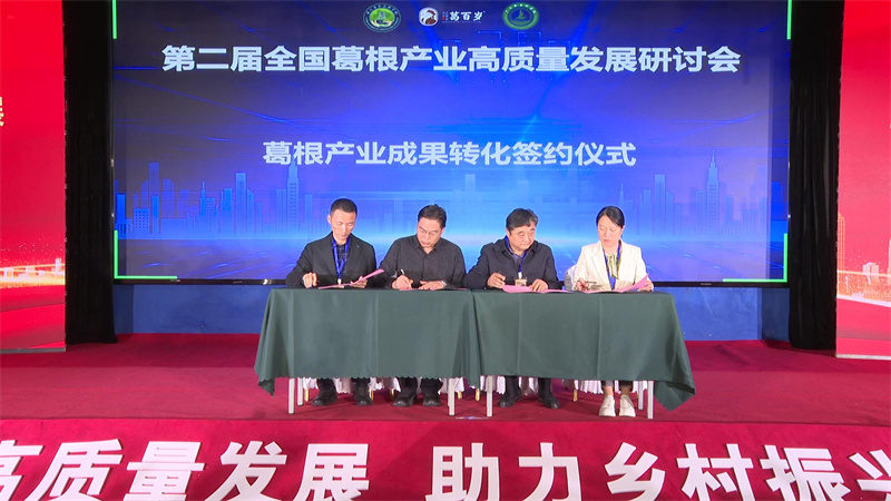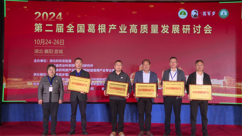 会议期间,湖北葛百岁葛业有限公司还与湖北省农业科学院中药材研究所、广西壮族自治区农业科学院经济作物研究所、湖北时珍实验室签订了葛根产业科研成果转化合作协议;国家食药同源产业科技创新联盟葛根产业专业委员会评选了素食牦肚(湖北葛百岁葛业有限公司产品)等五款“2024年度葛根创新产品”,并由国家食药同源产业科技创新联盟副理事长、中国中医科学院首席研究员、岐黄学者谢雁鸣教授为获奖单位授牌。