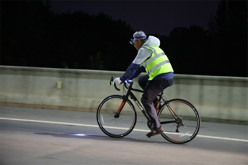 丈量过程中,袁林首先完成300米标定路线的多轮骑行测试,随后开始赛道路线骑行。每骑行1公里,便停下车与工作人员一同使用油漆对测量点进行标记,并仔细核对数据、定点标记、拍照存档,为后续设置计时点、补给点、医疗点提供精准依据。