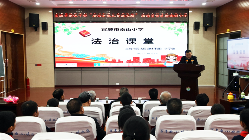 在法治宣讲环节,退休干部结合《中华人民共和国预防未成年人犯罪法》《中华人民共和国未成年人保护法》等法律法规,从校园欺凌预防、网络安全、交通安全等方面,以“案例+解读”的方式进行教学,让学生们了解相关法律知识,懂得如何防范风险隐患。