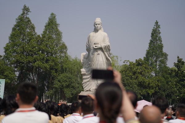 位于陆羽故里园的茶圣陆羽雕像。(记者冯凯 摄)