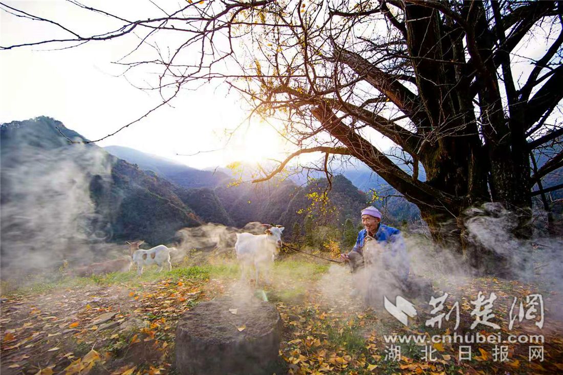 千年银杏谷景区白云出岫,美景如画。(秭归县委宣传部 供图)