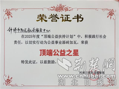 钟祥市阳光社工中心获评“顶端公益之星”