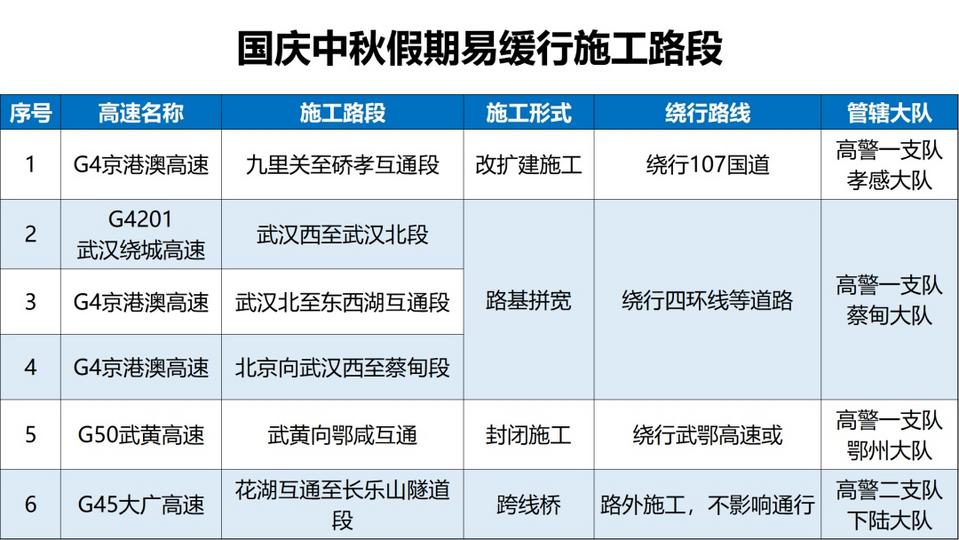 湖北发布中秋国庆出行指南 国庆头两天车流量最大