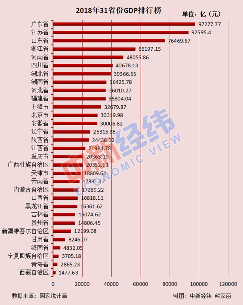 此外,中新经纬客户端综合各省份GDP和常住人口数据发现,经济大省的常住人口相对较多,排名也比较靠前。2018年GDP排名前10的省份,除福建外,广东、江苏、山东、浙江、河南、四川、湖北、湖南、河北这9省份位居常住人口前十名。
