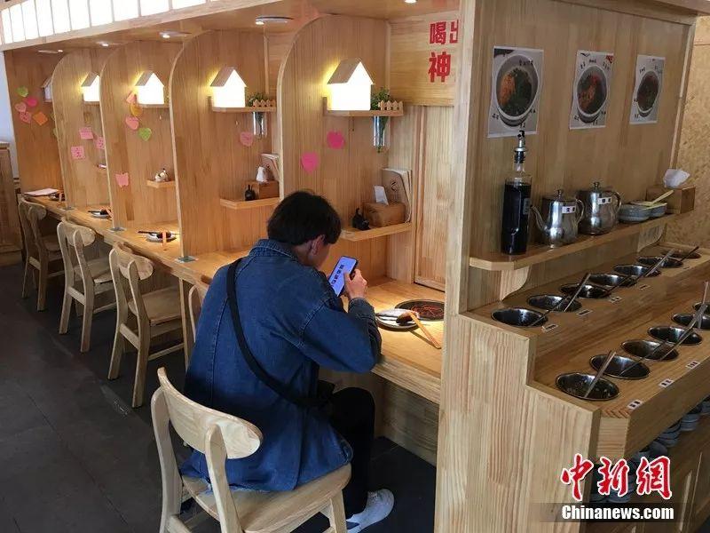 近日,小新来到武汉一家主打“一人食”的餐厅看到,这家日式风格的火锅店,将餐厅设置为“岛区”“隐区”“寻区”“无界”四个区域。其中,“独食”区域主要位于“寻区”,共有12个座位,每个座位前安装有卷帘,服务员上菜时直接掀开卷帘送进去。